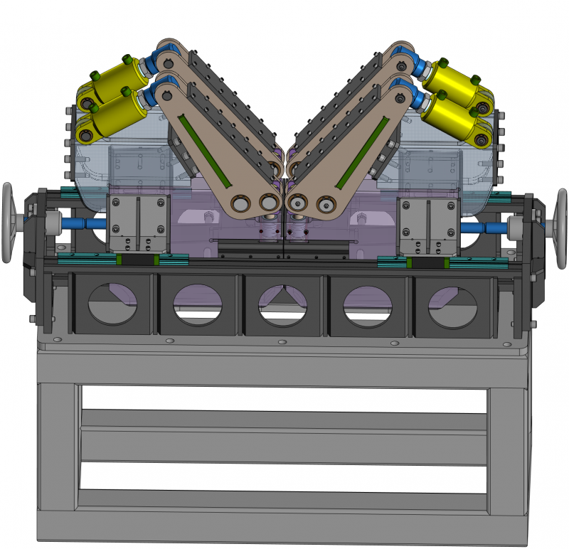 Замена штампа для линий с использованием рулонного металла. Перфорирует штрипс на линии с остановками. Позволяет выставить расстояние между отверстиями при помощи маховиков разводя или сводя перфорирующие скобы.
